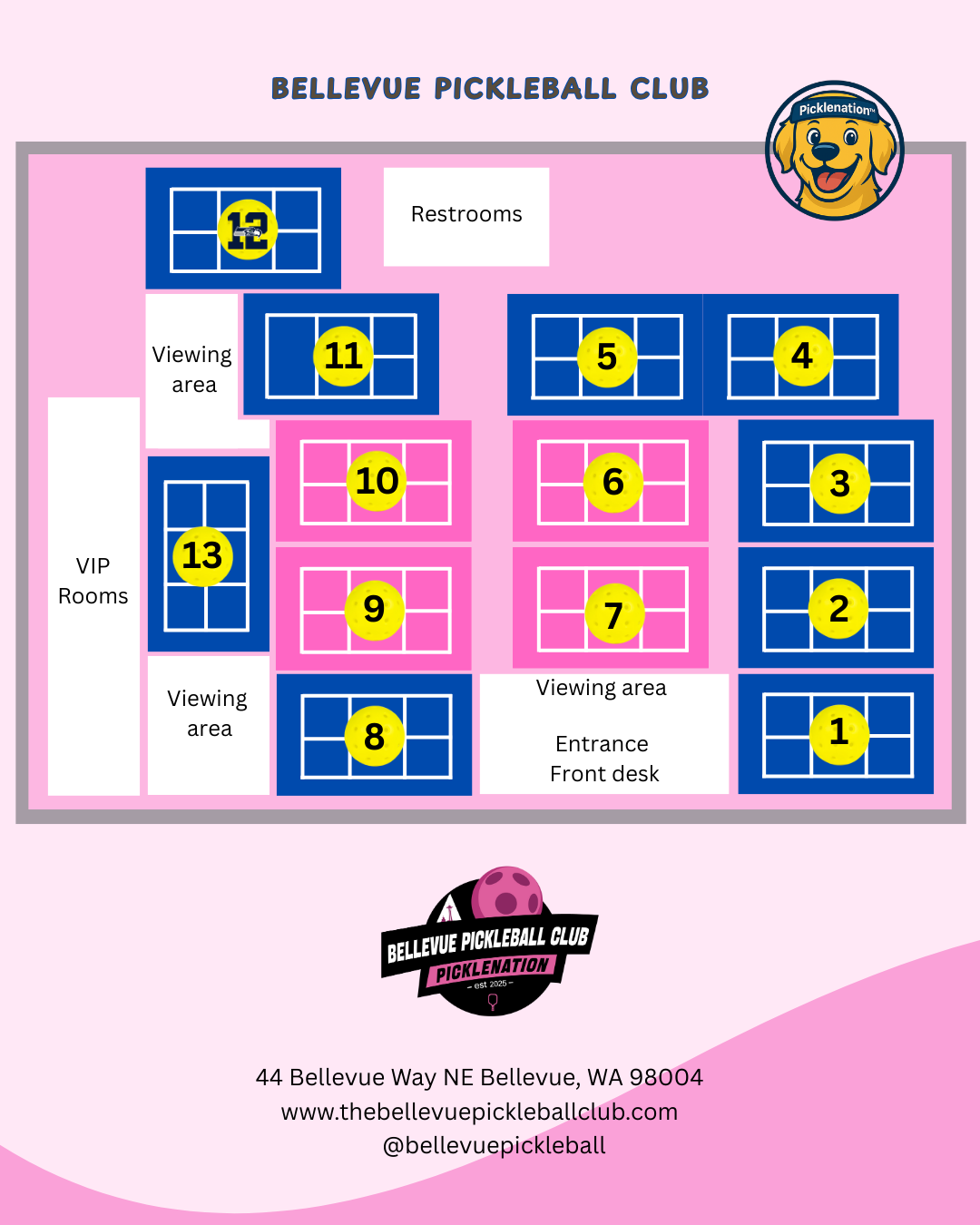 Our 4 signature pink courts offer a unique and vibrant playing experience. These specially designed courts have become a beloved feature of our club, providing both aesthetic appeal and professional-grade playing conditions. We are proud to be the first indoor pink court design in the United States.
